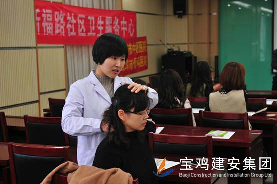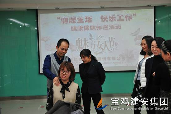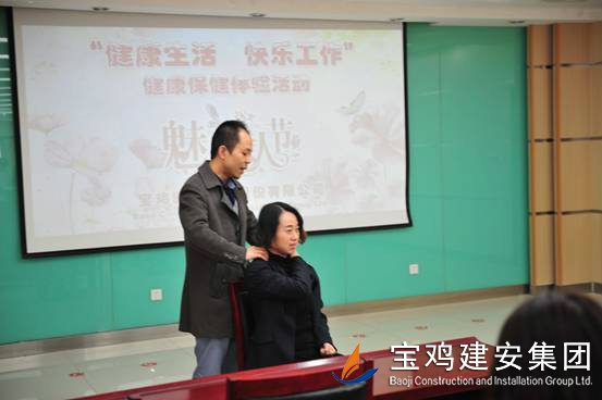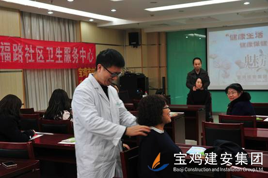 3月8日下午,在我司22樓第三會(huì)議室工會(huì)組織舉辦了一場“健康生活,快樂工作”健康保健體驗(yàn)活動(dòng),邀請(qǐng)寶雞市中醫(yī)醫(yī)院推拿科鄧寶鋒副主任醫(yī)師為公司員工講授了一堂常見職業(yè)?。i椎、腰椎)等健康保健知識(shí)。公司工會(huì)楊主席、新福路社區(qū)衛(wèi)生服務(wù)中心醫(yī)護(hù)人員、公司員工五十多人參加了本次活動(dòng)。