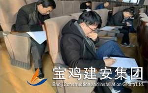 本次考核由人力資源部組織,各職能部室根據(jù)各崗位員工應(yīng)知應(yīng)會知識點及重要的標準、規(guī)范內(nèi)容提前出題,題型包含單選題,多選題、填空題、判斷題及簡答論述題。項目技術(shù)負責人試題選自歷年一級建造師經(jīng)典例題,考試時間為三個小時,其余崗位考核時間均為一個半小時。本次考核采取閉卷考試,書面作答,為了保證本次考試的嚴肅性及公正性,在考前將所有人員的手機、資料統(tǒng)一收集存放,并加強考場巡查頻率,在考試過程中,各考試員工認真審題,積極作答,每位員工都能按時答完試卷,充分表明大家也抽出了一定時間去學習自己崗位的理論知識點。