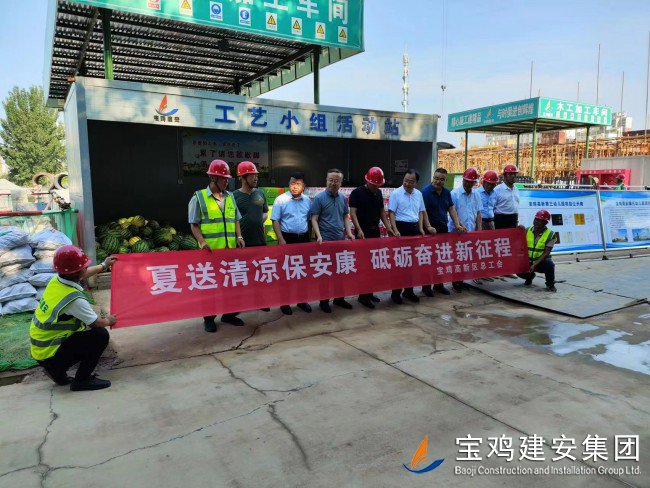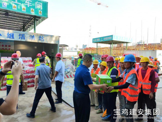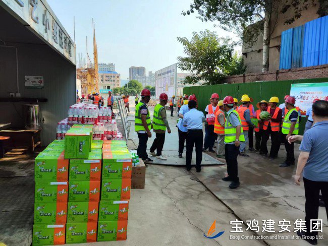 718日上午,寶雞高新區(qū)管委會(huì)黨工委委員、管委會(huì)副主任楊海翔,高新區(qū)總工會(huì)主席李廣強(qiáng),區(qū)教育系統(tǒng)黨委書記、教育體育局局長(zhǎng)唐宏,副局長(zhǎng)劉輝等一行領(lǐng)導(dǎo),前往建安集團(tuán)承建的寶雞高新第三幼兒園建設(shè)項(xiàng)目工地,走訪慰問(wèn)一線員工,開展“夏送清涼”活動(dòng)。