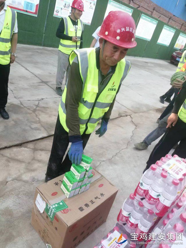 活動(dòng)現(xiàn)場(chǎng),高新區(qū)管委會(huì)領(lǐng)導(dǎo)親自將西瓜、飲料、純凈水、藿香正氣水等多種防暑降溫用品送到了現(xiàn)場(chǎng)的廣大員工手中,向大家三伏天堅(jiān)守在一線崗位表示感謝和問(wèn)候。