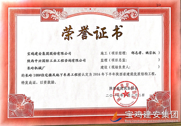 長(zhǎng)嶺108#樓及地下車庫(kù) 省優(yōu)質(zhì)結(jié)構(gòu)工程