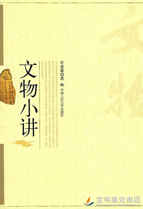 公司開展“書香企業(yè)”讀書月活動,提供了大量優(yōu)秀的各類書籍供員工閱讀,我有緣拜讀到一本臺灣著名學(xué)者許進雄先生的作品《文物小講》。 這本書以通俗易懂而不失學(xué)術(shù)的小品文方式,介紹了150件中國文物。文物歷史橫跨新石器時代至清代,文體精悍短小,詮釋精辟生動,讓人閱讀時仿佛置身博物館中游覽,不知不覺引人入勝。
